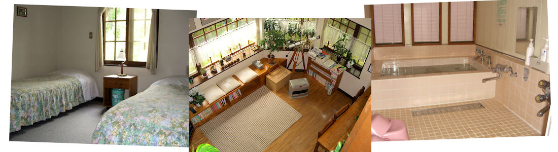 ◎アメニティー(タオル、バスタオル、歯ブラシ、ハミガキ、パジャマ等)については、経済的な料金の維持のため備え付けていません。(バストイレ付きのお部屋にはバスタオルがあります。)